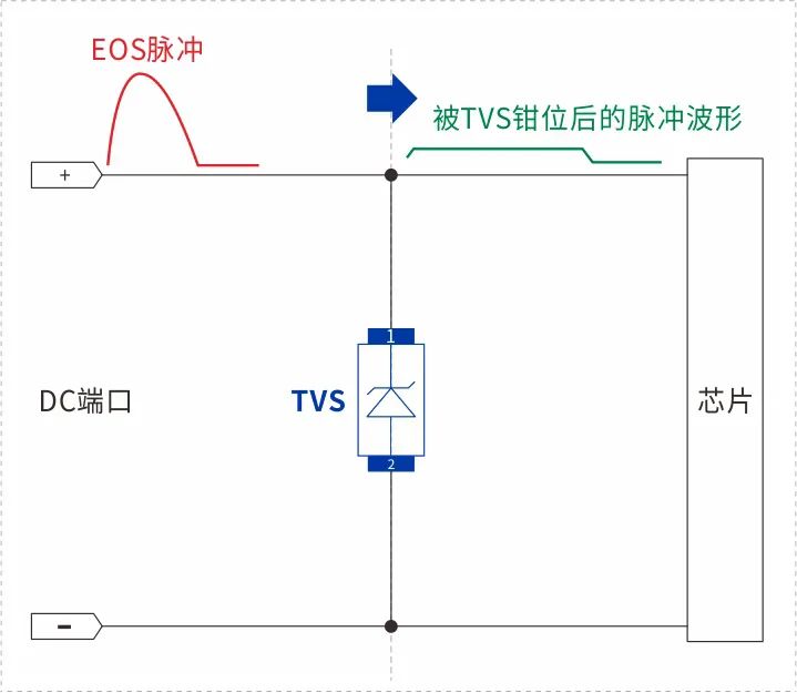 如果你的充電端口是5V供電我們建議你選擇工作電壓(VDRM)7V的BV-FE07ZA,如果你的端口是9V-20V我們建議你選擇工作電壓24V的BV-D124ZD。我們知道不是所有的充電器(或電源)都穩(wěn)定,假如5V充電口也選擇工作電壓為5V的TVS,當(dāng)插入不穩(wěn)定的充電器后可能會使TVS長時間在直流下導(dǎo)通,因而燒壞。 我們在服務(wù)客戶的過程中,常常有這樣的提問:在充電端口TVS到底該選單向還是雙向? 我們試著把這個問題解答清楚。首先,要理解什么是正向EOS、負(fù)向EOS,如上圖一,正向EOS是EOS電流從電路正極流向負(fù)極,但TVS遭受反向(N到P)的EOS沖擊,負(fù)向EOS是EOS電流從電路的負(fù)極流向正極,但TVS遭受正向(P到N)的EOS沖擊。