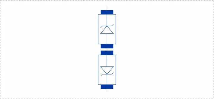 上面兩顆BV-FE05ZA的P極串聯(lián)在一起就組成了一顆雙向的TVS,如下圖四,TVS無論遭受正向還是負(fù)向的EOS沖擊,電流總會流經(jīng)一個N到P的反向結(jié),因而鉗位電壓的絕對值也是在8.9V左右。